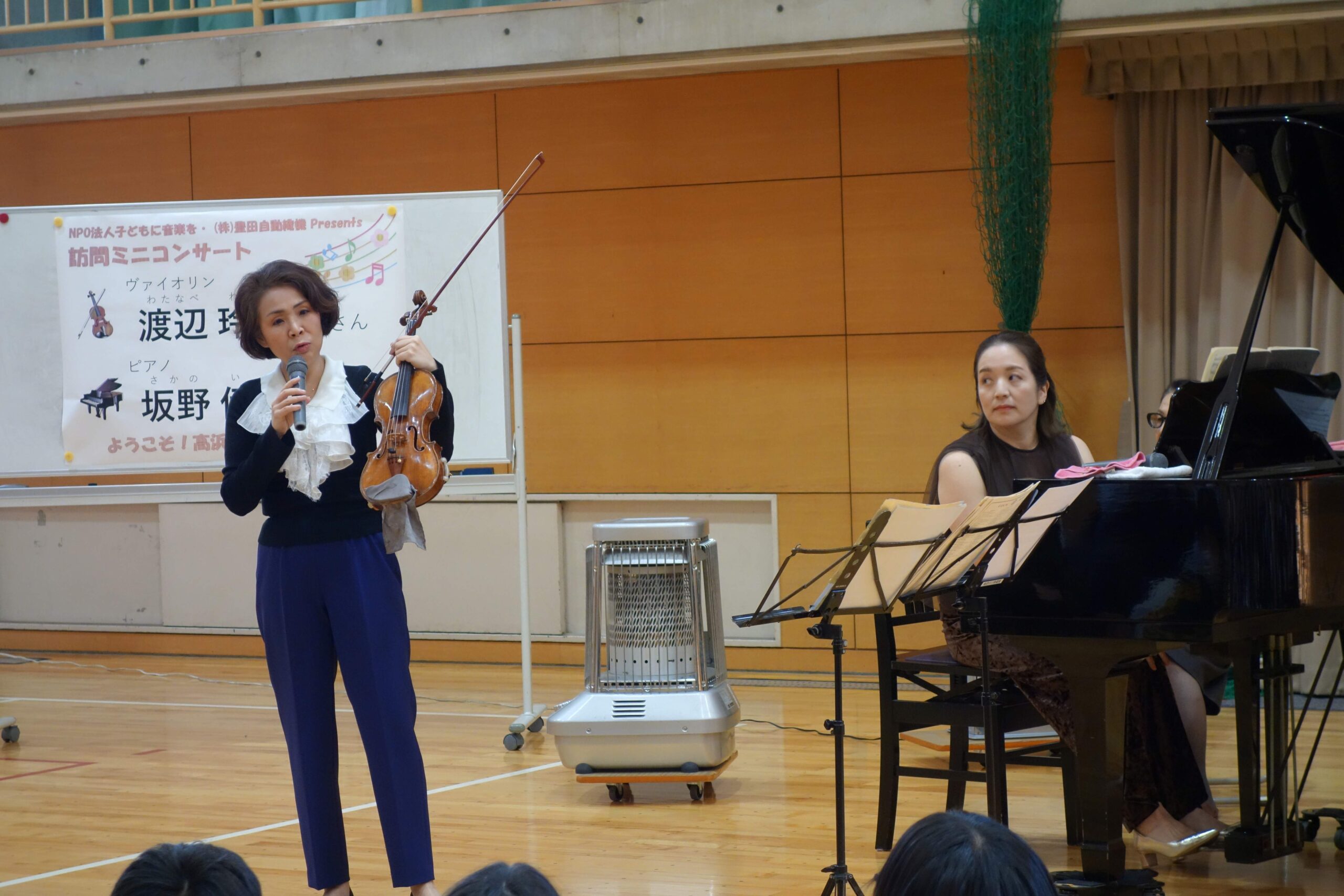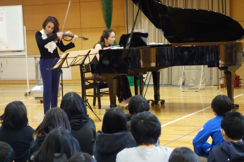 チャイコフスキー:メロディー ≪ 楽器のお話 他 ≫ フランク:ヴァイオリンソナタ第4楽章 第1曲棒の踊り、第5曲ルーマニアのポルカ、第6曲速い踊り ≪ 質問コーナー ≫ サラサーテ:チゴイネルワイゼン 共演曲:5年生「マイバラード」1番 6年生「ふるさと」1~3番 |