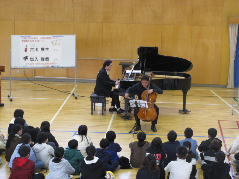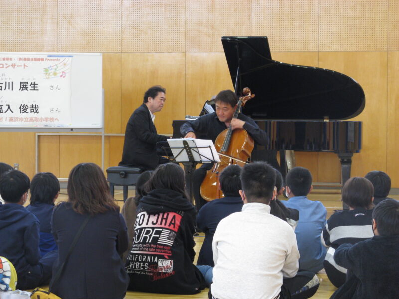 バッハ: 無伴奏チェロ組曲第1番よりプレリュード ≪ 楽器のお話 他 ≫ サンサーンス :白鳥 ≪ 質問コーナー ≫ ピアソラ :リベルタンゴ 校歌 |